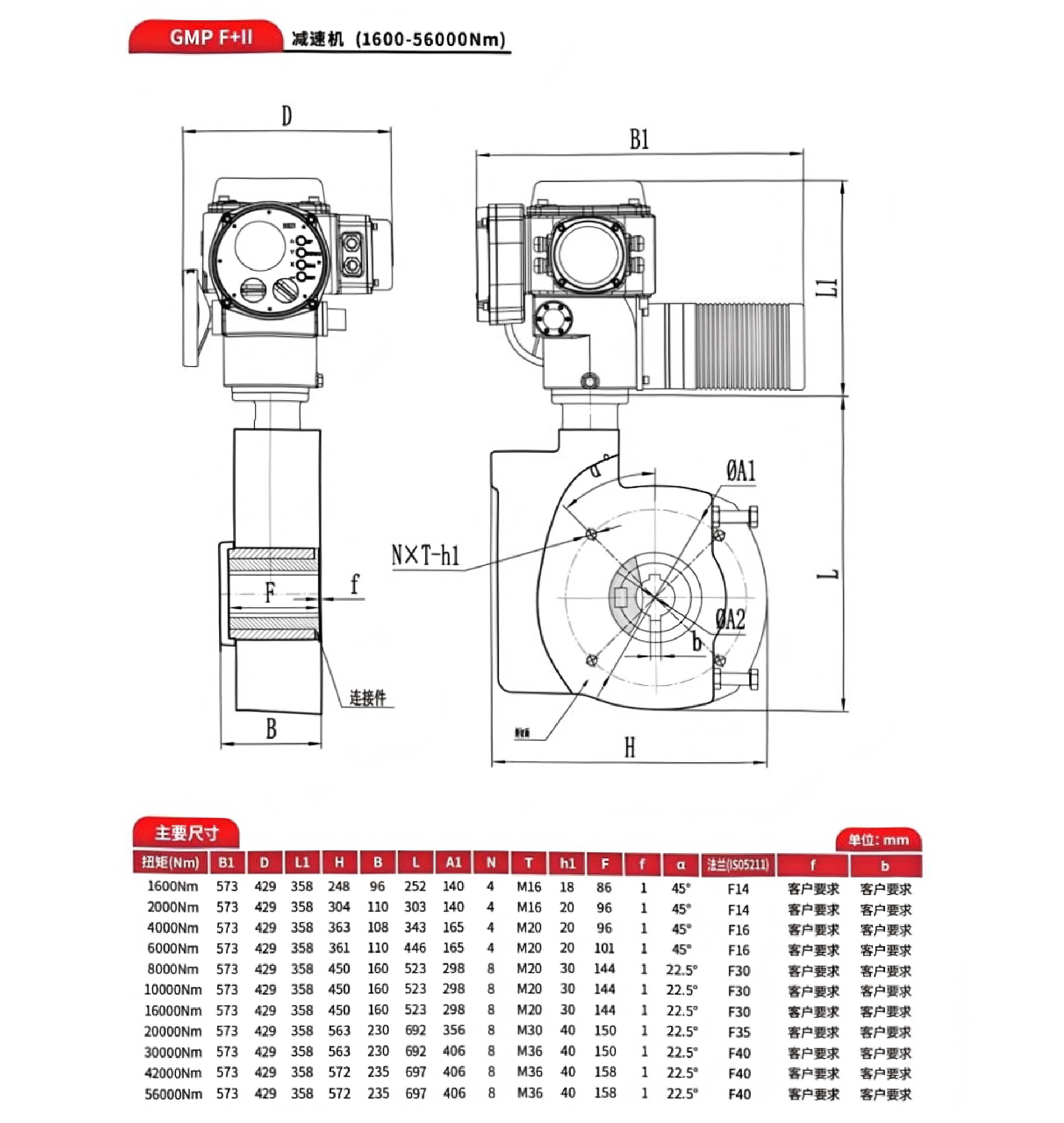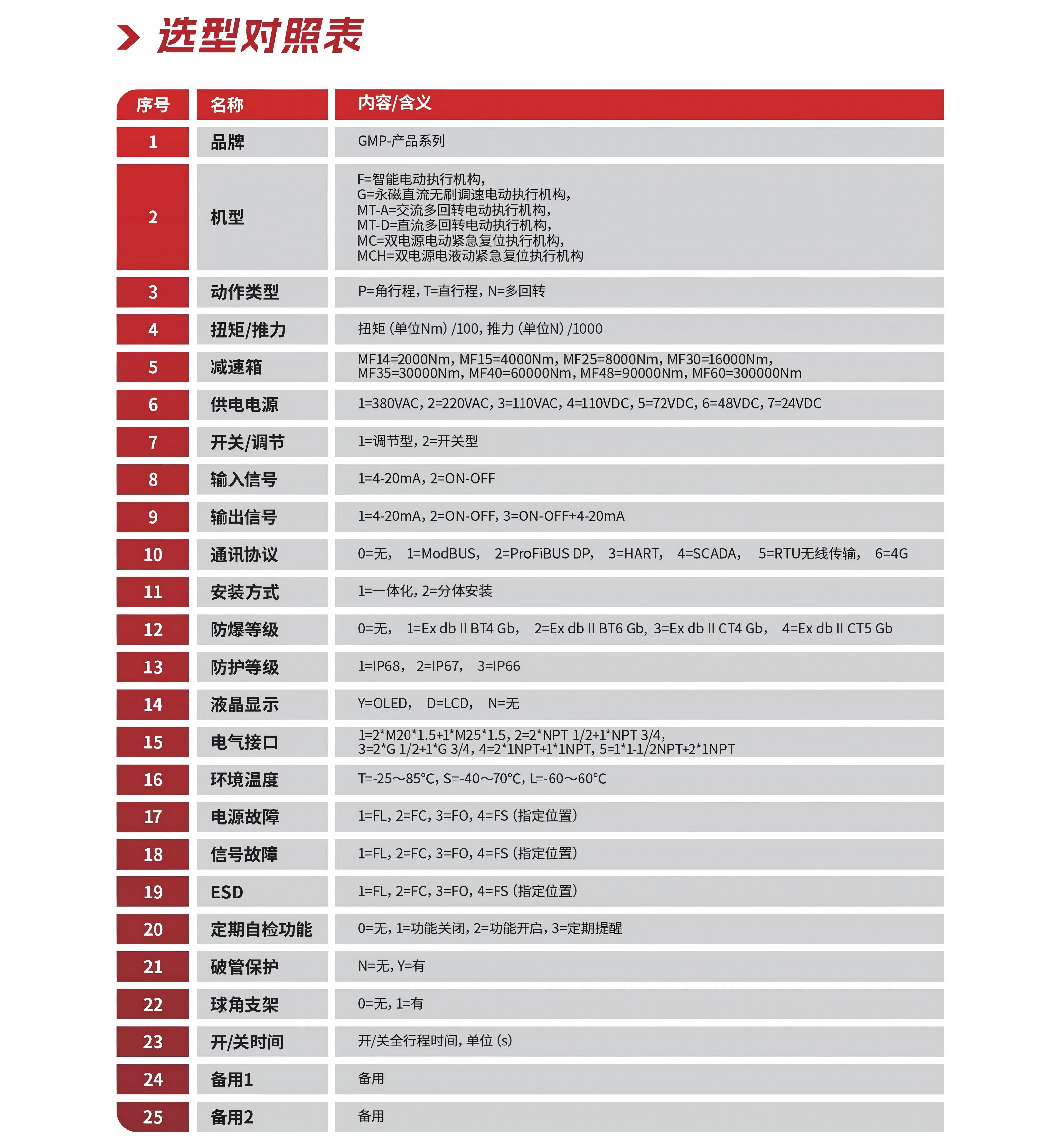 GMP-MT-A采用交流电机,具有高精度的电子行程限位,同时具备过力矩保护功能。GMP-MT供多回转执行器的输出范围30-12000Nm ,根据特殊工况要求,采用不同的传动比和不同的输出转速(≤63rpm)。