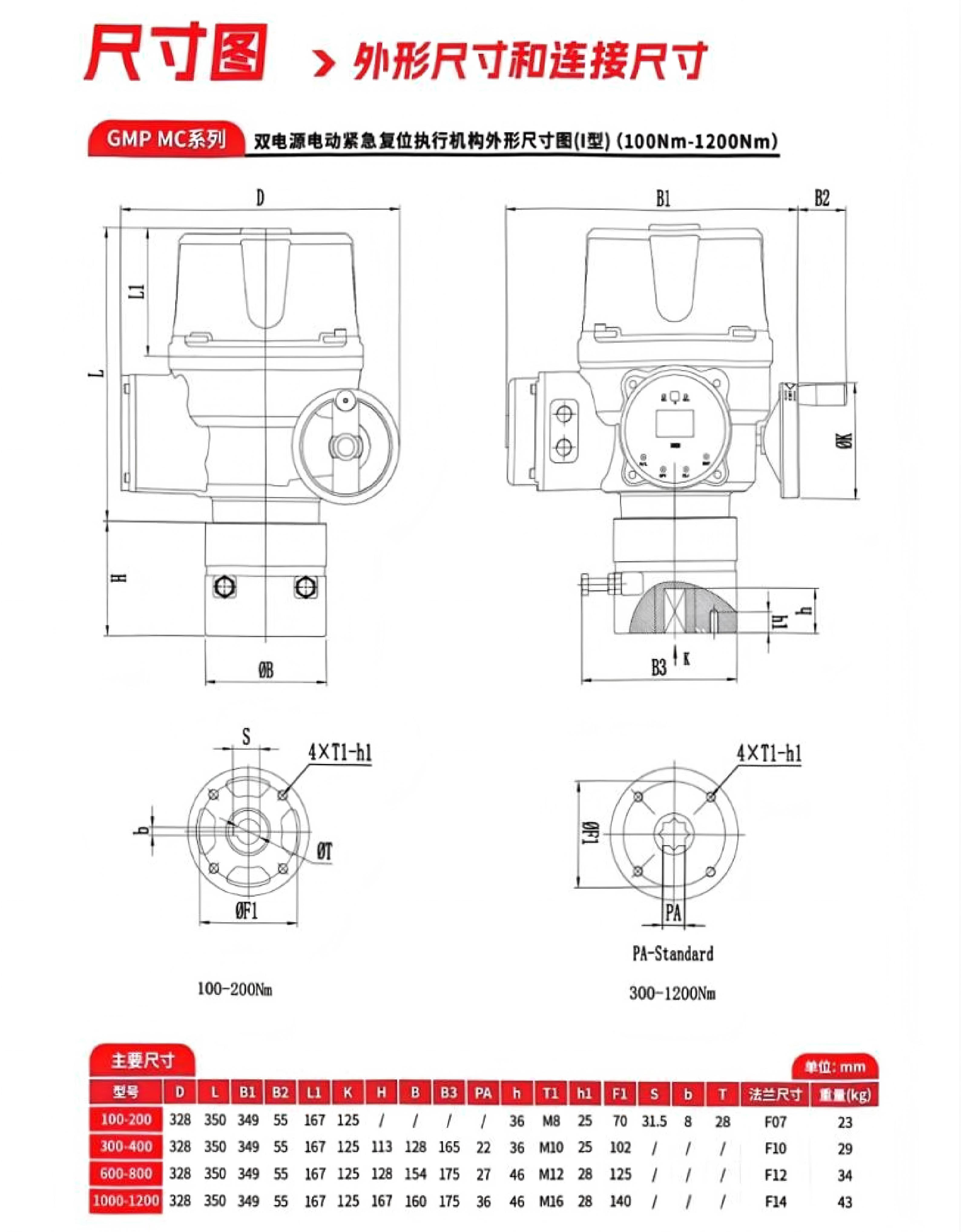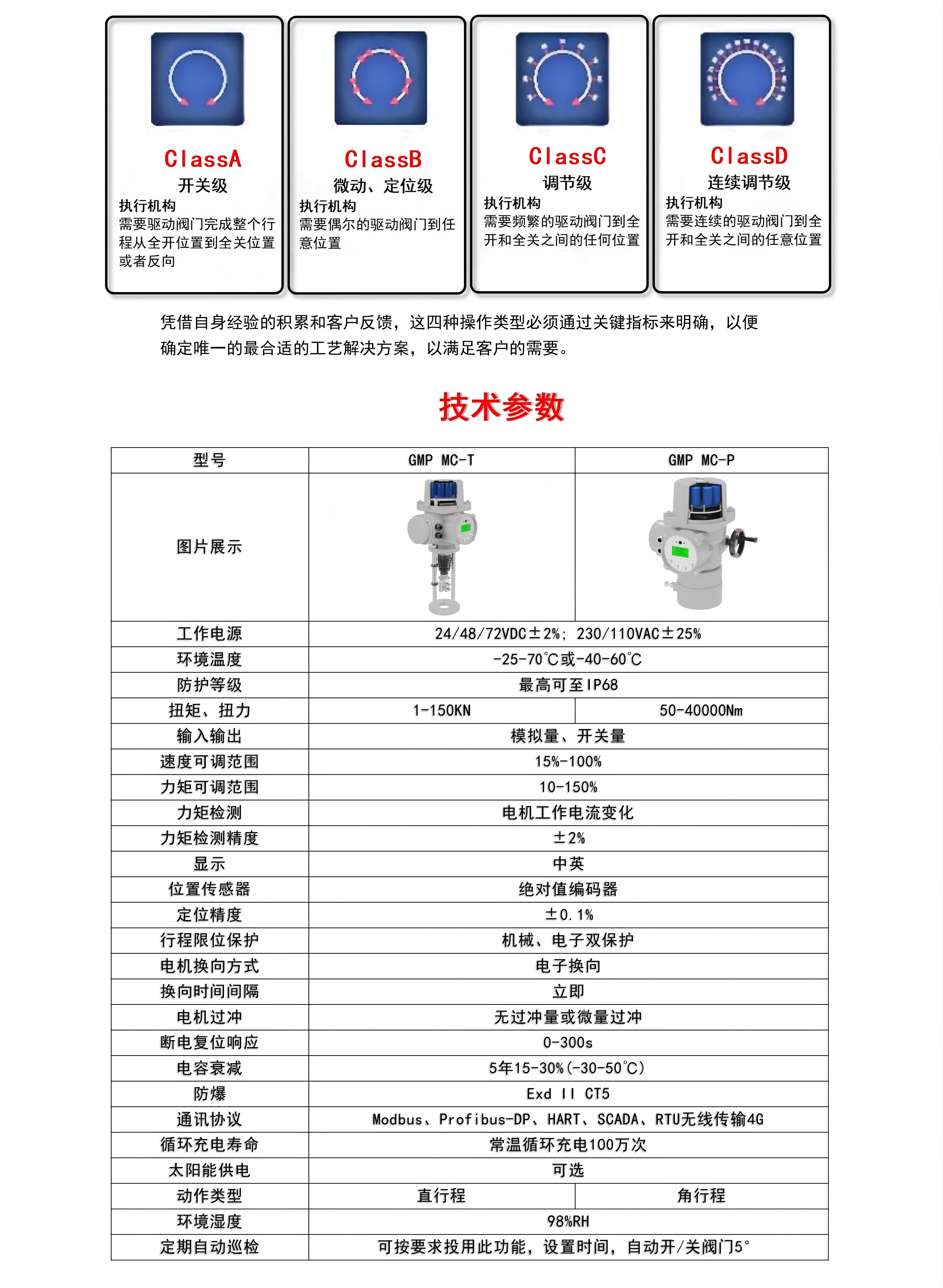 GMP-MT-A采用交流电机,具有高精度的电子行程限位,同时具备过力矩保护功能。GMP-MT供多回转执行器的输出范围30-12000Nm ,根据特殊工况要求,采用不同的传动比和不同的输出转速(≤63rpm)。