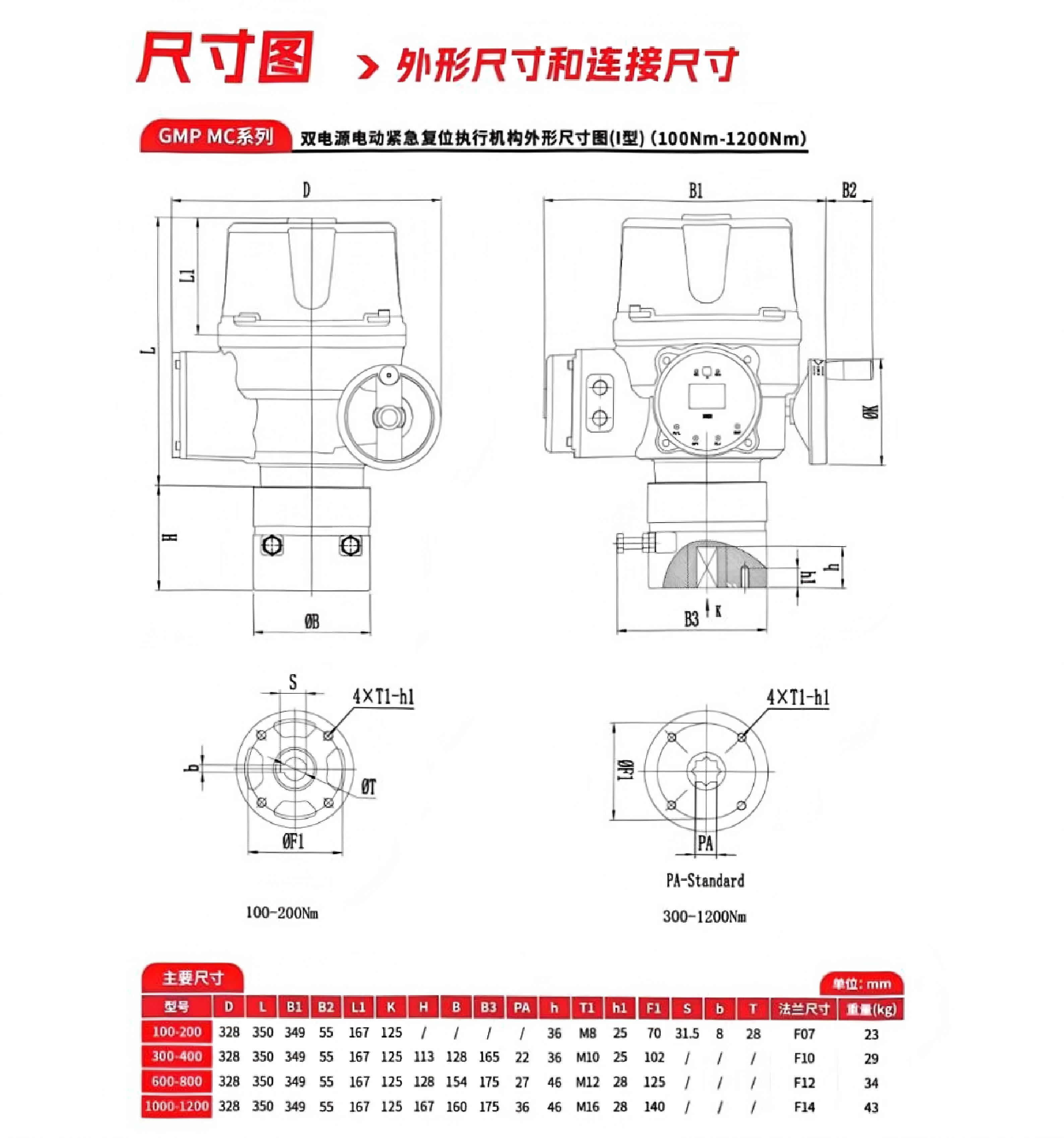 GMP-MT-A采用交流电机,具有高精度的电子行程限位,同时具备过力矩保护功能。GMP-MT供多回转执行器的输出范围30-12000Nm ,根据特殊工况要求,采用不同的传动比和不同的输出转速(≤63rpm)。